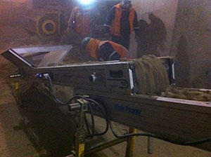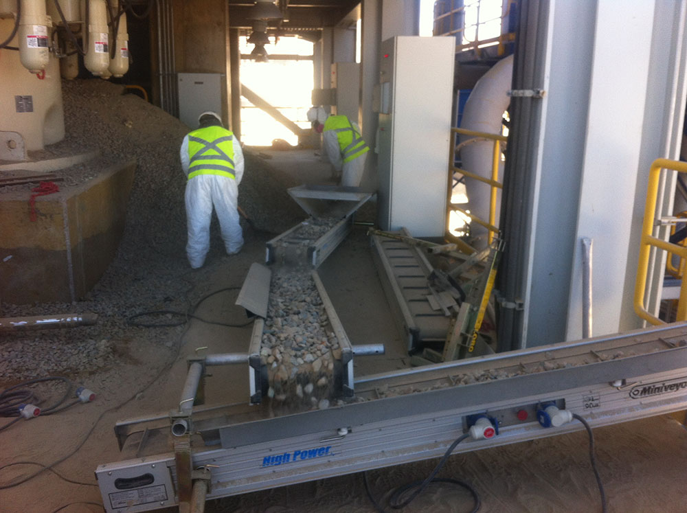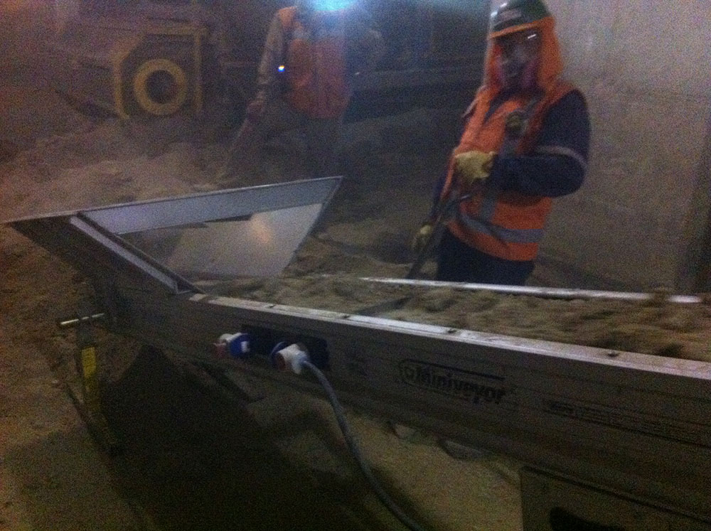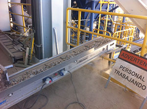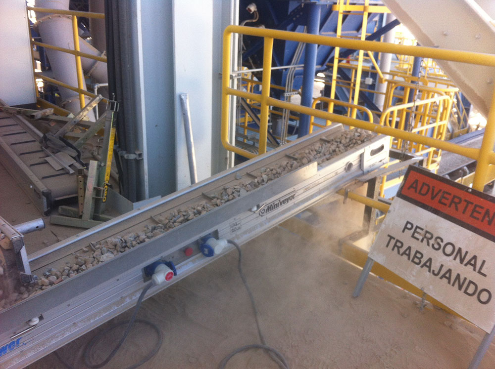 Se implementó un 1 kit de equipos transportadores Miniveyor en área a despejar de un total de 3 adquiridos, esta implementación tardó 30” y cubrió una línea de 9 mts, realizando una luz lanzamiento frontal a cola de correa en 90°, DEVOLVIENDO EL MATERIAL EN EL PISO DIRECTAMENTE A CICLO PRODUCTIVO. En este sitio trabajaban normalmente solo en labores de limpieza y retiro de material entre 6 a 10 operarios, dependiendo del nivel de acumulación de material.